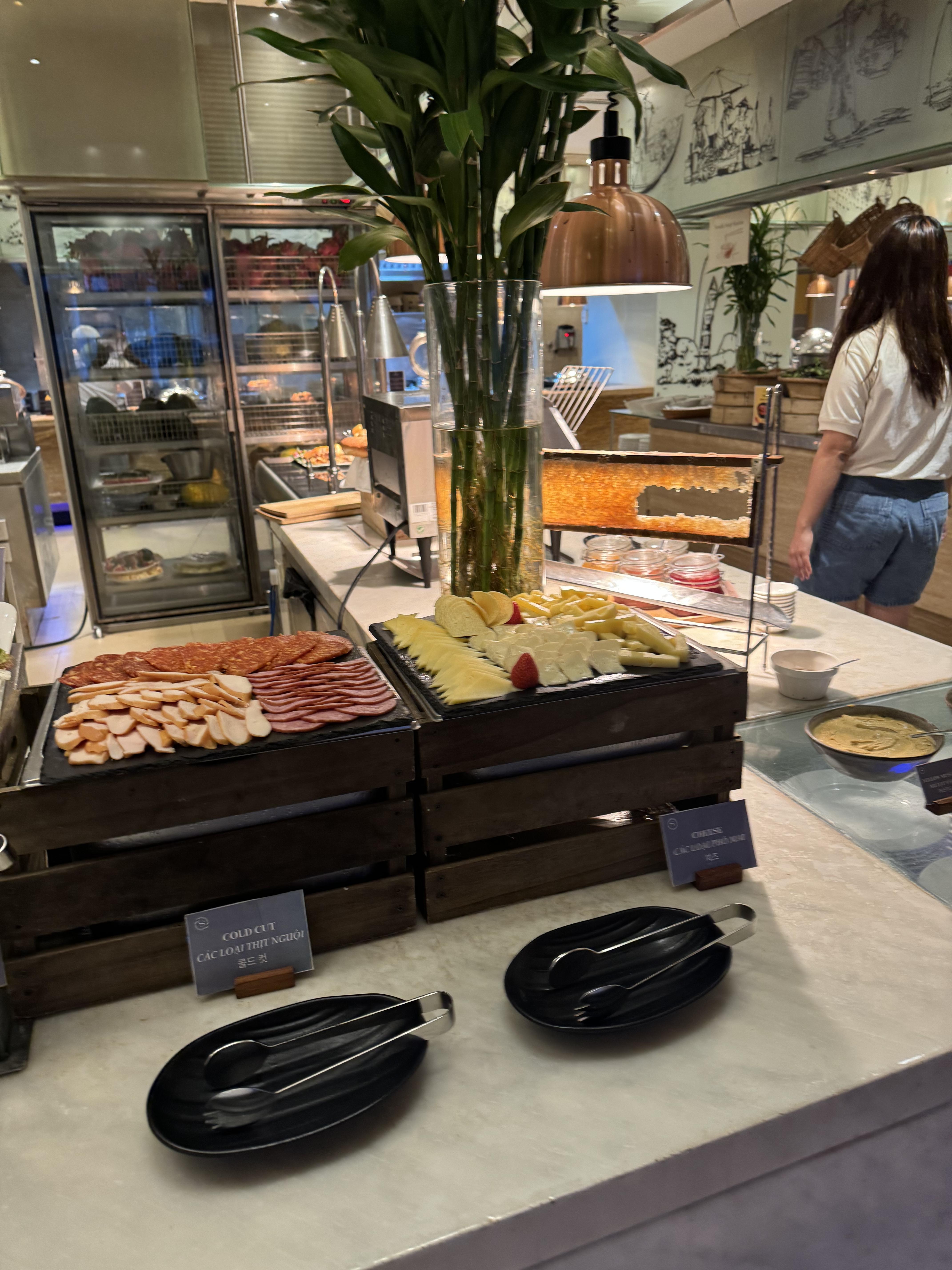 음식의 종류나 퀄리티 다 좋았습니다. 랍스터 5마리 먹고 배불러서 못 먹었어요. 저희는 다른 음식보다 랍스터 위주로 먹었습니다. 랍스터가 살이 진짜 많아서 먹을 것이 많았습니다. 그리고 뷰도 좋고 라이브로 나오는 노래가 좋은 노래가 많아서 분위기도 좋고 최고였습니다. 전체적인 음식은 다 맛있지는 않습니다. 파스타는 싱겁고 무슨 맛인지 모르겠고 다른 건 손이 가는 게 솔직히 많이 없었어요. 제가 제일 좋았던건 알콜 무제한! 소주나 와인이 무제한이라 최고였습니다. 하지만 응온빌라에선 다들 랍스터가 살이 많지 않다고 했는데 쉐라톤은 살도 많고 맛있었습니다. 우린 남편 생일이라 너무 관광객이 많지 않은 곳으로 선택했습니다. 가격 차이가 크니 각자의 취향을 맞춰서 선택해서 가시면 좋을 것 같아요.
