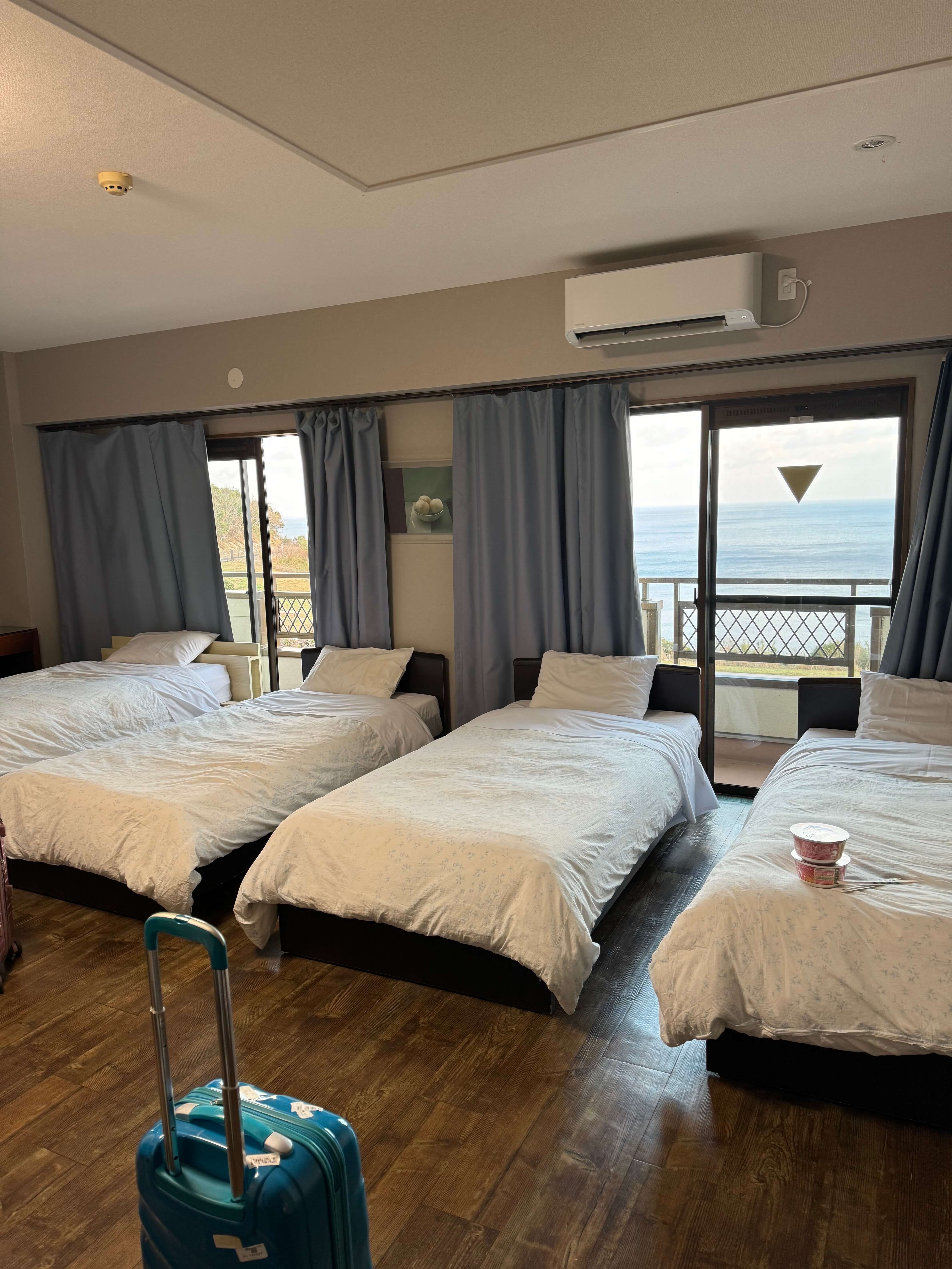 예약할 때 2명이서 패밀리룸을 선택했던 제일 큰 이유!!! 7천 원 차이였어요. 가격차이가 얼마 나지 않으니 이걸로 선택했습니다. 오션뷰 패밀리 룸은 추우니까 방 안에서 해 뜨는 걸 보기 위해 선택했고요!!!
