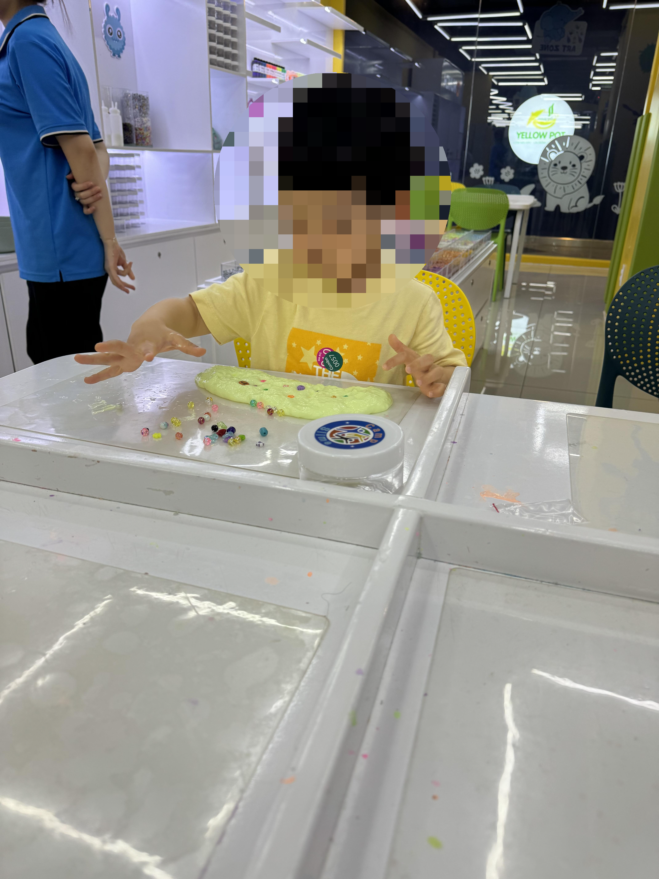 시설은 기니피그도 있고 편백나무존도 있고 트램펄린 자전거 닌텐도존 레고존 볼풀 있을 거는 다 있어요. 매점도 있습니다. 매점에 뽀로로 음료도 있어서 목마를 때 사주기 좋았어요. 조카는 볼풀과 자전거 제일 좋아하고 슬라임은 한 번도 한적 없어서 경험해 보라고 추가해 줬는데 안 해줬음 진짜 후회할 뻔했어요. 비즈도 다양하고 컬로도 다양해서 처음 하는데도 너무 재밌어했어요. 집에 갈 때까지 그슬라임을 놓지를 않더라고요😊