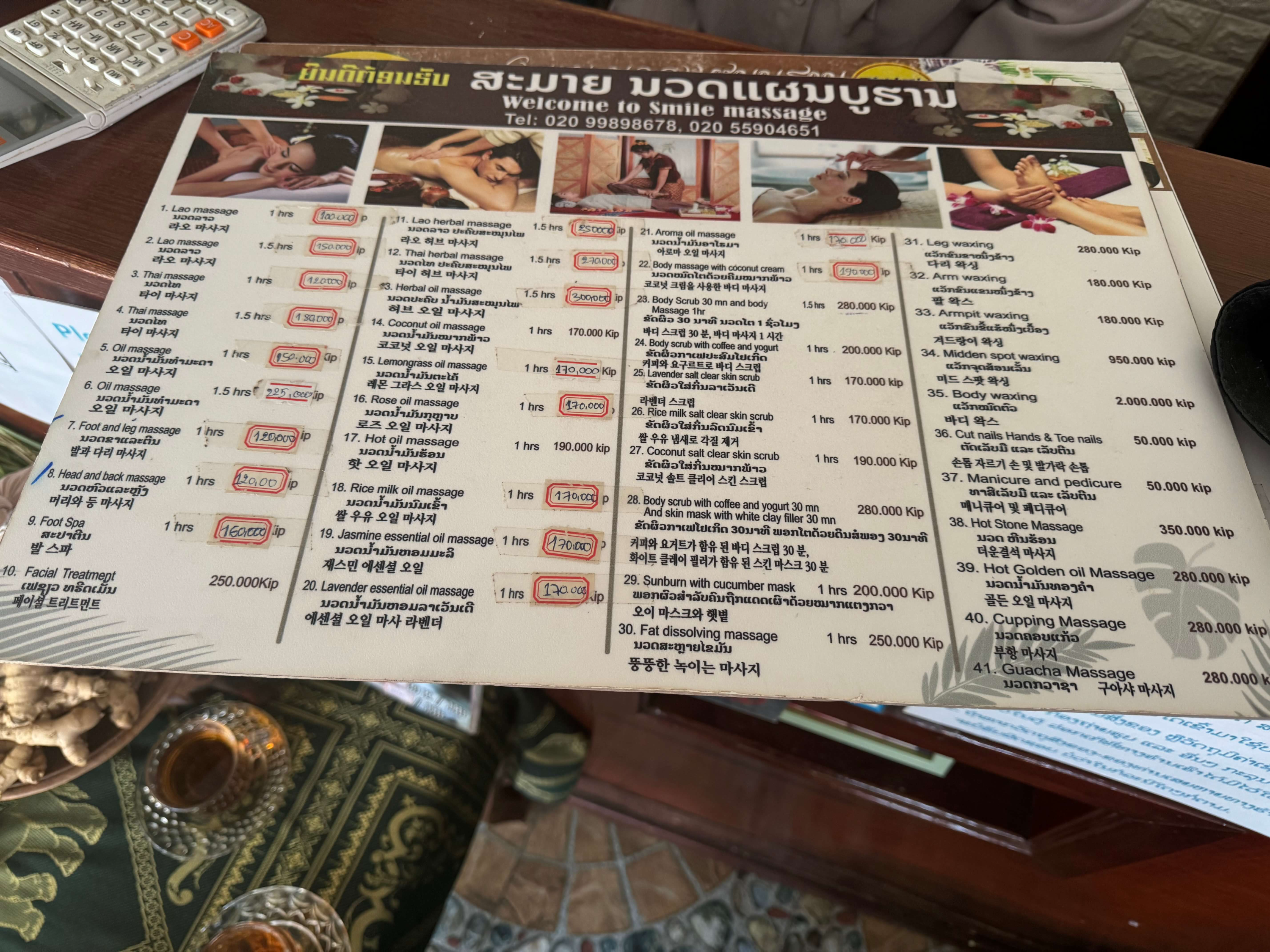 라오스의 방비엥에서는 하루에 한 번씩 마사지를 받는 것이 좋습니다. 이 가격이면 하루에 두 번 마사지를 받아도 부담이 없습니다. 저희는 방비엥에 도착한 후, 총 두 곳의 마사지샵을 방문했습니다. 주변에 마사지 샵이 많이 있지만, 그래도 이왕 받는 거 실력 있는 곳에서 받아야죠. 오늘은 진마사지와 스마일 마사지샵 모두 알려드리고 추천드릴게요.