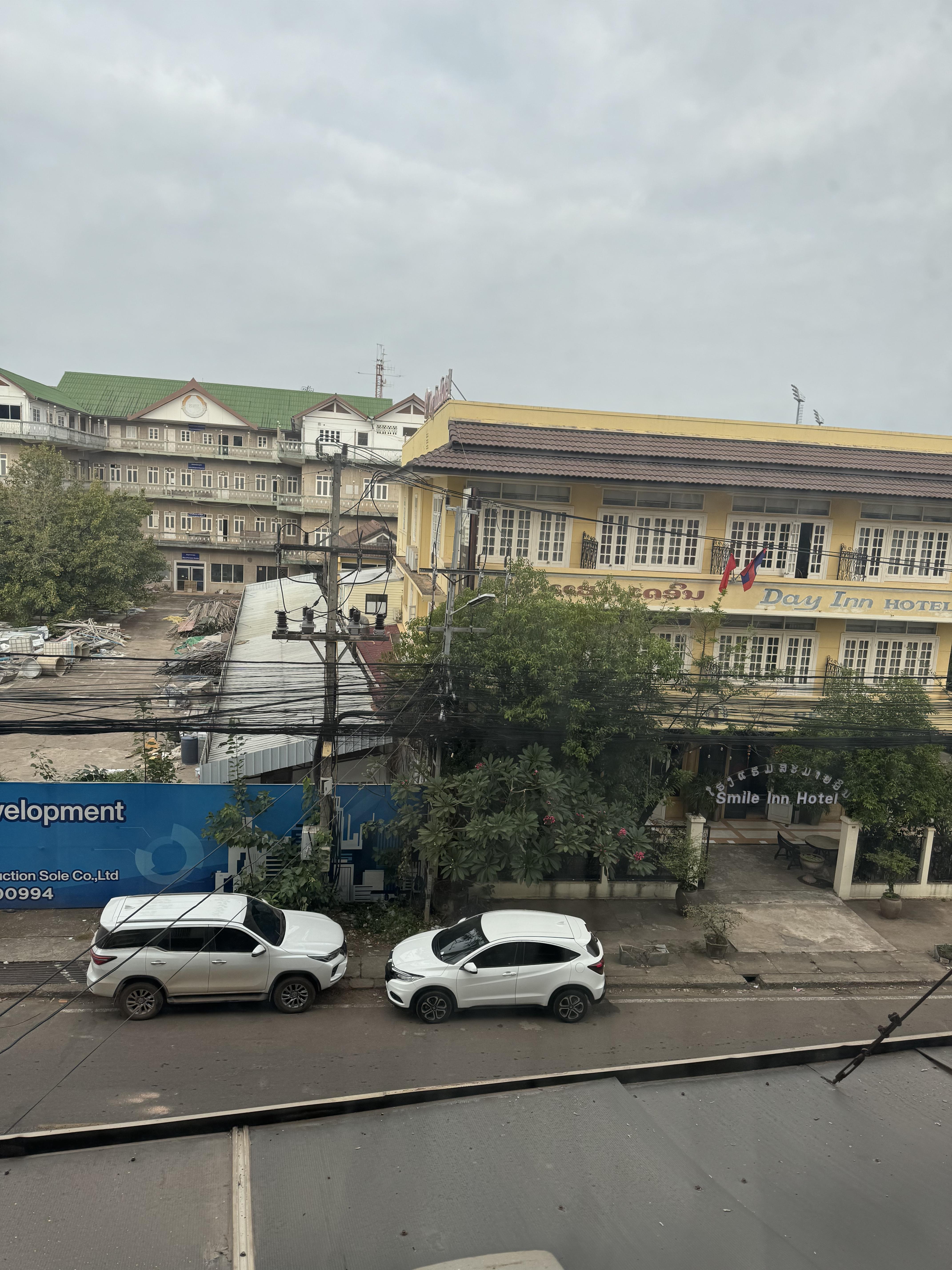 공사장도 아니고 고물상 느낌 솔직히 뷰있고 없고 가격차이도 얼마 안 났었고 그냥 금방 나갈 거니 그러려니 하고 넘어갔습니다. 여행의 시작이니까요! 외관은 많이 허름하고 새벽에 도착하니 로비에 불이 꺼져있고 직원이 핸드폰 플래시를 켜서 응대를 했습니다. 당황스러웠지만 그냥 이유가 있겠지 하며 넘어갔습니다. 이곳은 진짜 딱 하룻밤 잠시 머물 곳인 듯합니다. 벌레도 없고 생각보다 깔끔해서 괜찮네 수준입니다. 저의 한줄평은 라오스 물가에 이곳은 6만 원이면 아깝다. 재방문 0%