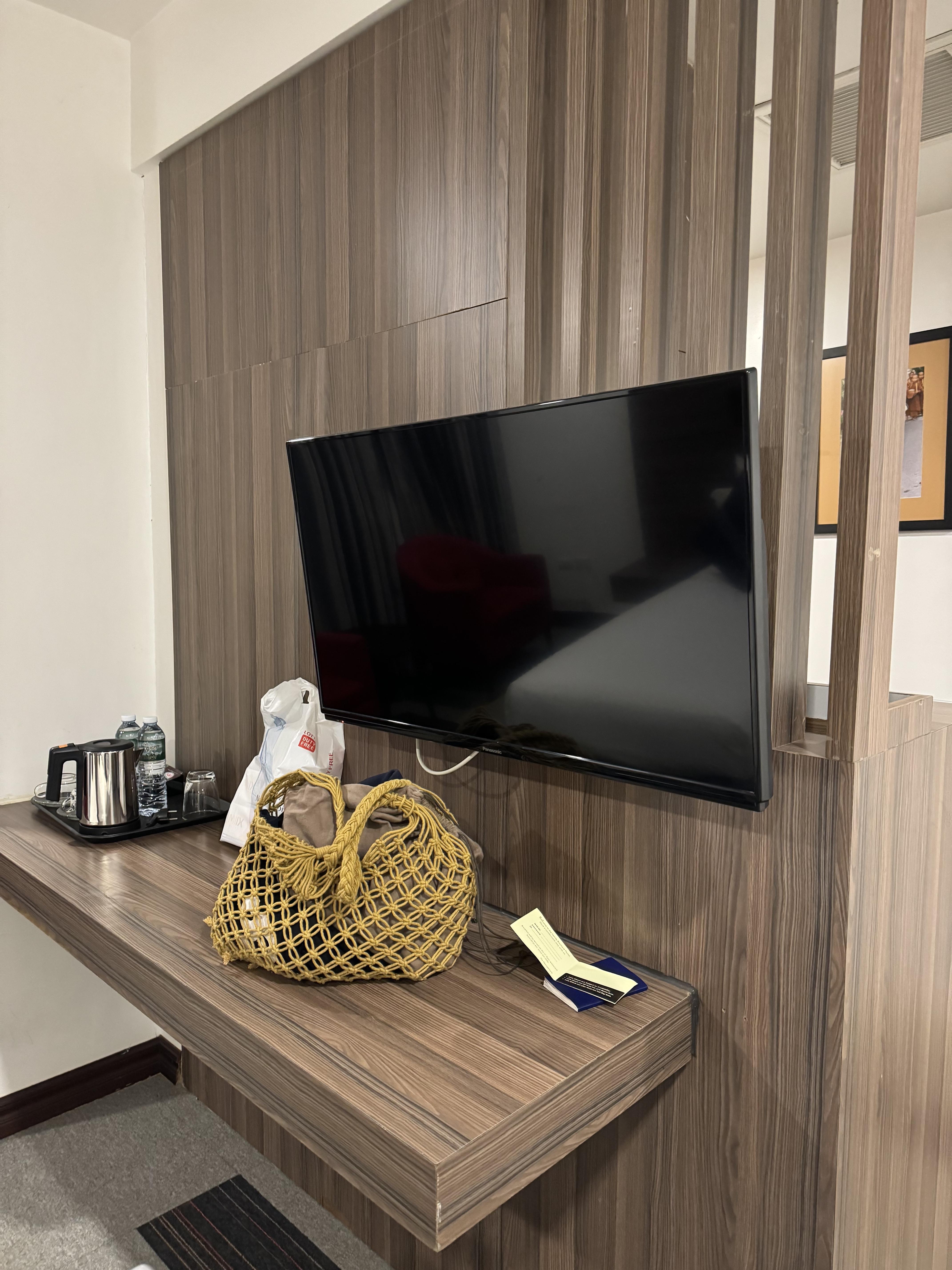 방? 호텔 겉을 보면 이 정도는 양호했습니다. 외관에 비하면 많이 괜찮았습니다. 물 2병 기본 있고 냉장고는 작동이 안되는건지 안이 뜨뜻했습니다