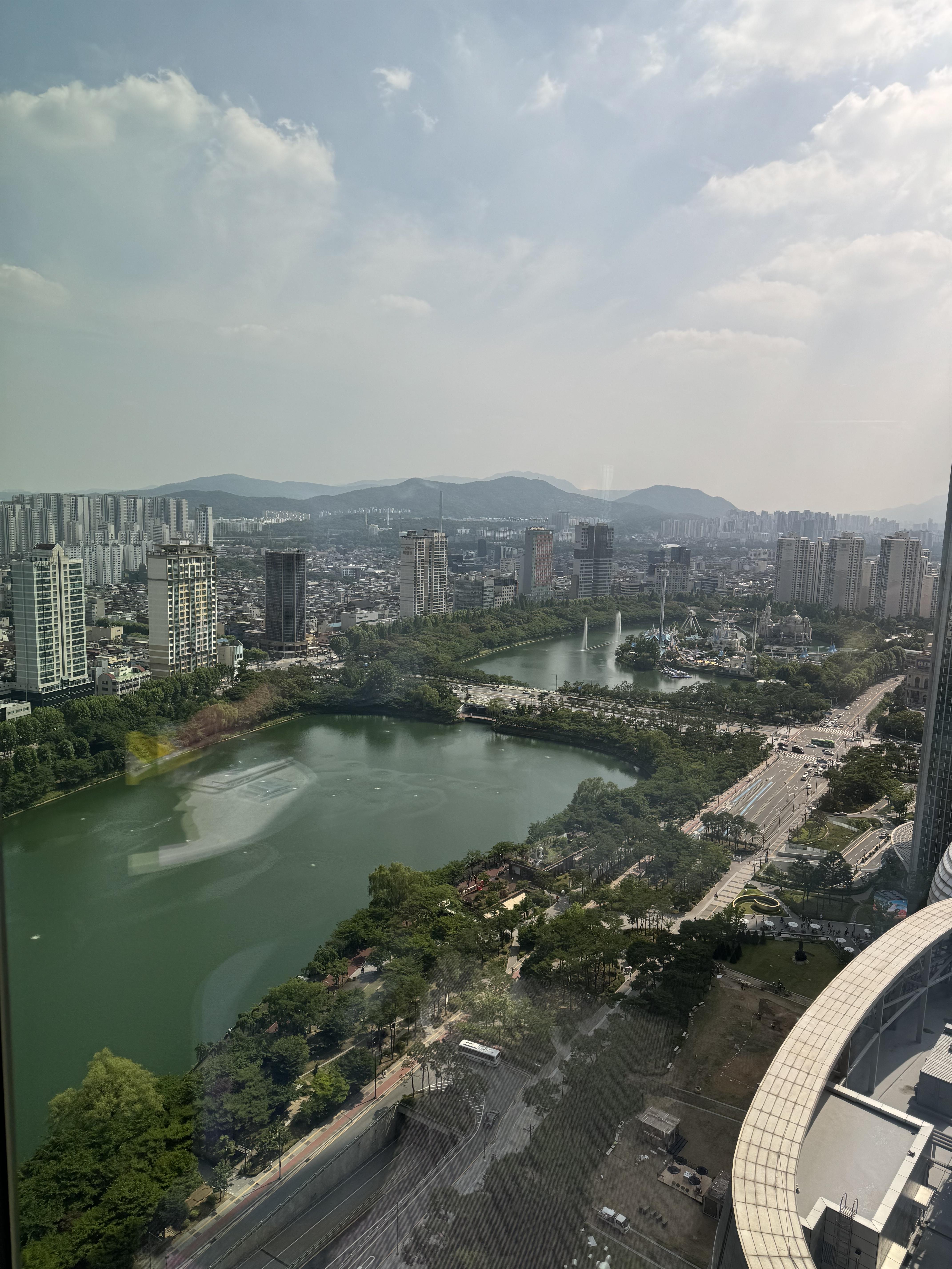 뷰. 이 호텔의 또 다른 장점입니다. 석촌호수와 롯데타워가 너무 예뻐요 밤에 침대도 푹신하고 좋습니다.