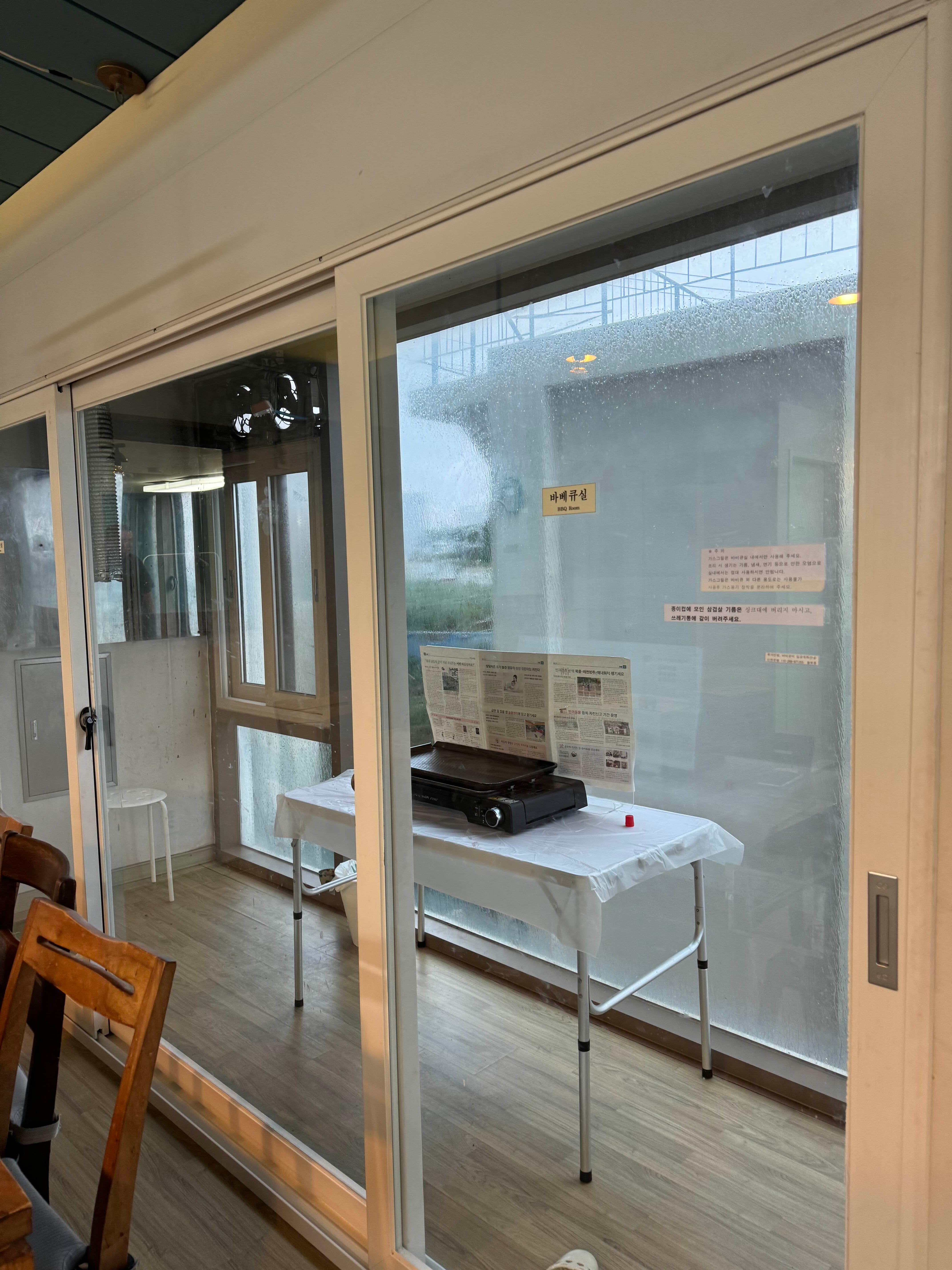 우리가 방문했을땐 비가 많이 와서 창밖이 잘 안보였지만 안쪽방 뷰는 바다뷰가 보입니다.