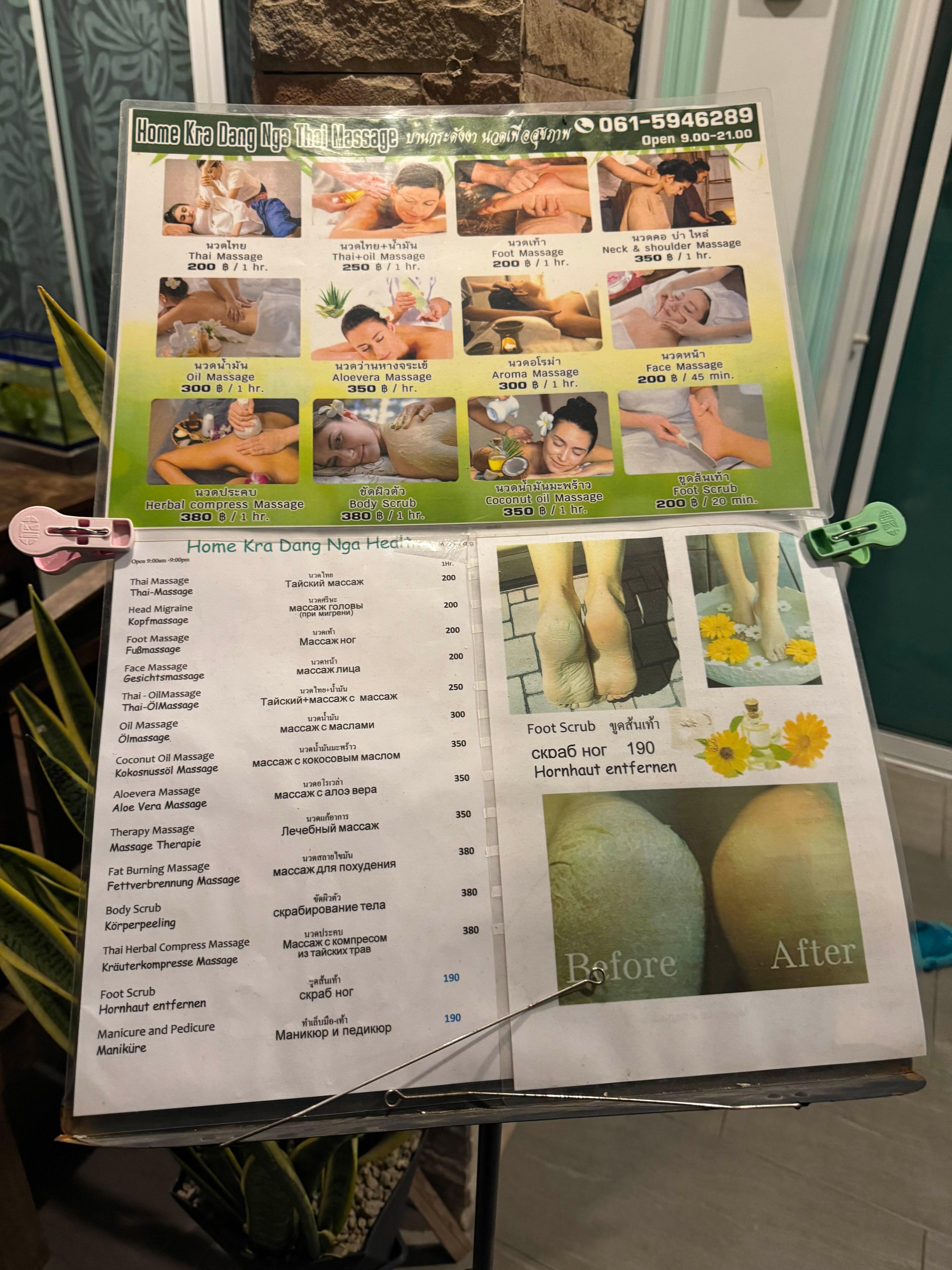 고급 마사지샵 보다 더 꼼꼼하게 마사지해 주시고 정성스럽게 해 주셨습니다. 로컬 마사지 샵이라 영어 하시는 분은 한분만 계시고 마사지사 분들은 영어는 안되시지만 영어 하시는 직원분이 잘 설명해 주셔서 불편함이 없었습니다. 저는 파타야에서 받은 마사지 중 제일 좋았습니다. 화려하거나 깨끗한 마사지 샵은 아니지만 저렴하다고 더럽거나 불편하지는 않았습니다. 저는 베란다 리조트 이용하시는 분들이라면 꼭 이용해 보세요!