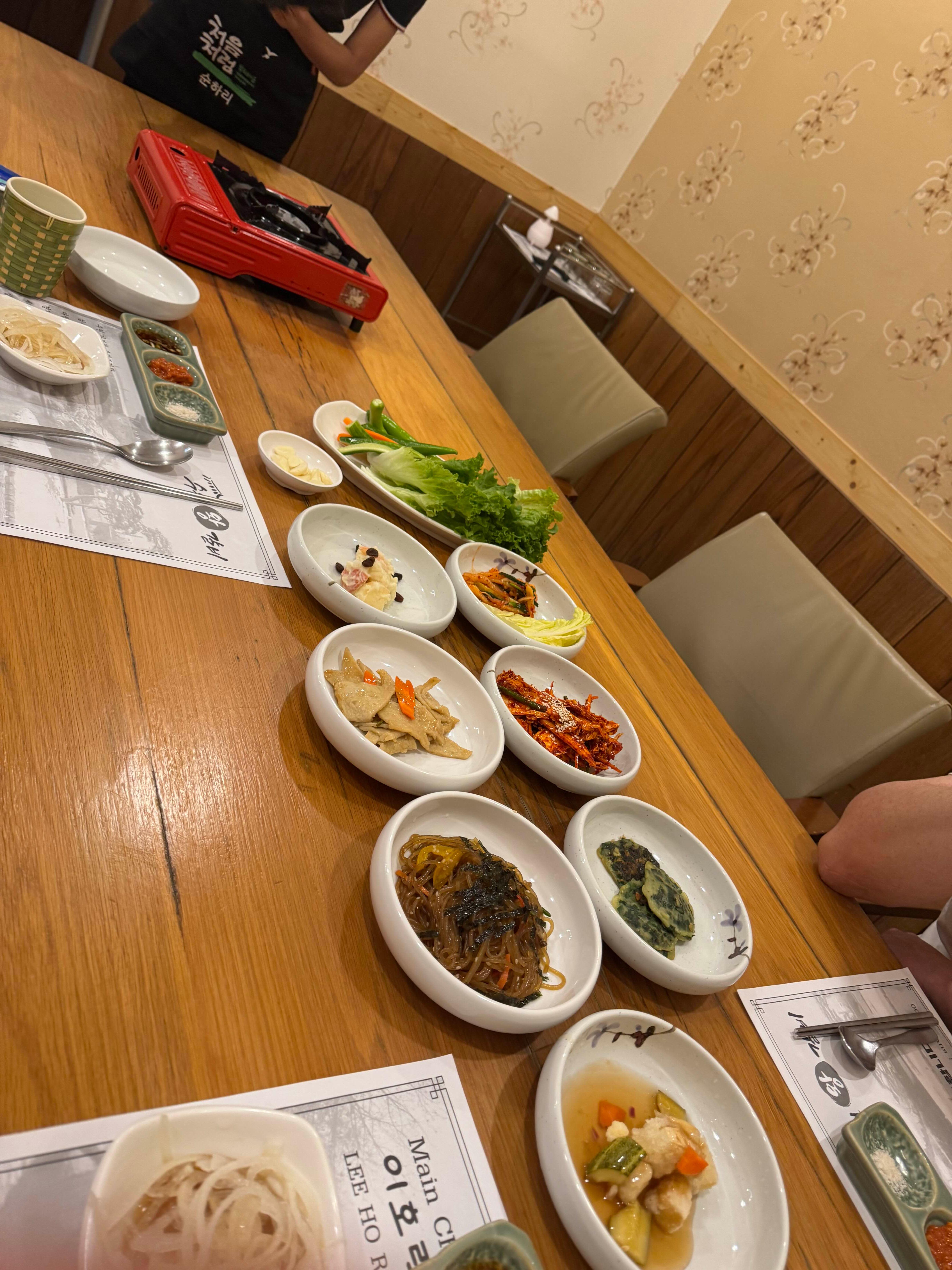 메뉴는 다양한 고기메뉴와 찌개메뉴, 안주메뉴등이 많아서 먹을거리는 많았습니다. 소주도 있어서 한식을 먹으며 소주도 즐길 수 있었습니다. 저희는 삼겹살과 계란찜을 주문했습니다. 밑반찬도 다양하게 많이 나옵니다.
