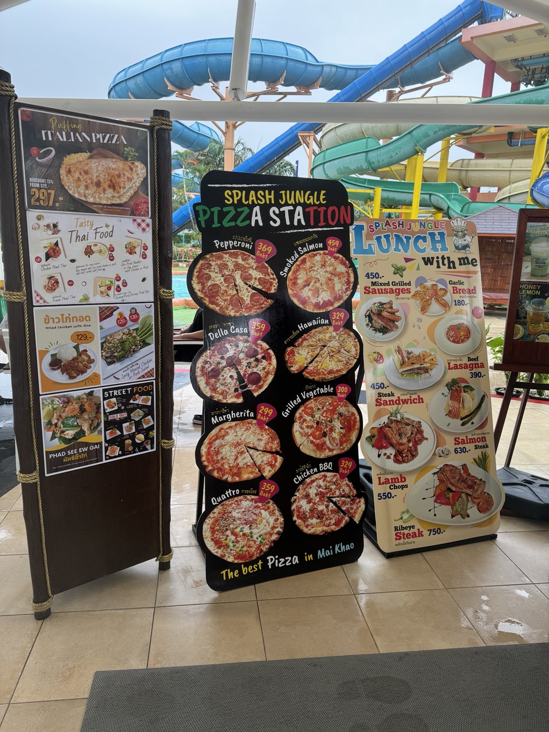 푸드코트도 화덕까지 갖추어져 있어 피자도 맛있고 다양한 메뉴와 음료가 있어서 좋았던 거 같습니다. 사람도 많지 않아 좋았고 안다만 다 만큼 큰 워터파크는 아니지만 편하게 내 방에서 씻을 수 있고 나름 재밌게 잘 놀아서 저는 추천드립니다. 워터파크는 투숙객이 아니더라도 이용권을 구매하면 입장 가능합니다. 입구에서 구매 가능하고 한국에서도 미리 구매 가능합니다. 구매 링크는 아래에 첨부해 두겠습니다.